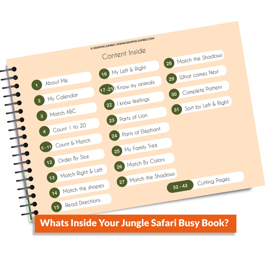 Jungle Safari Busy Book - Printable Preschool Activities Kids